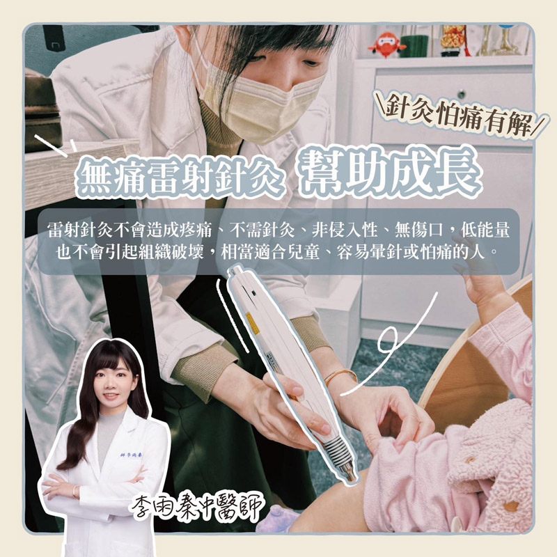 雷射針灸一次治療時間通常只需要 5-10 分鐘,在現今繁忙的生活中,中醫可以提供一個節省時間、無痛、安全又有效的治療方法,孩子們可以在中醫的調理及陪伴下,快樂健康成長!